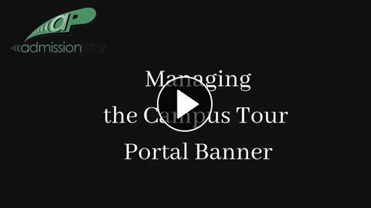 Portal banners are customizable screens within AdmissionPros that are visible to students and used to share targeted information throughout the enrollment process. The language on the campus tour registration page is managed in the tour portal banner.